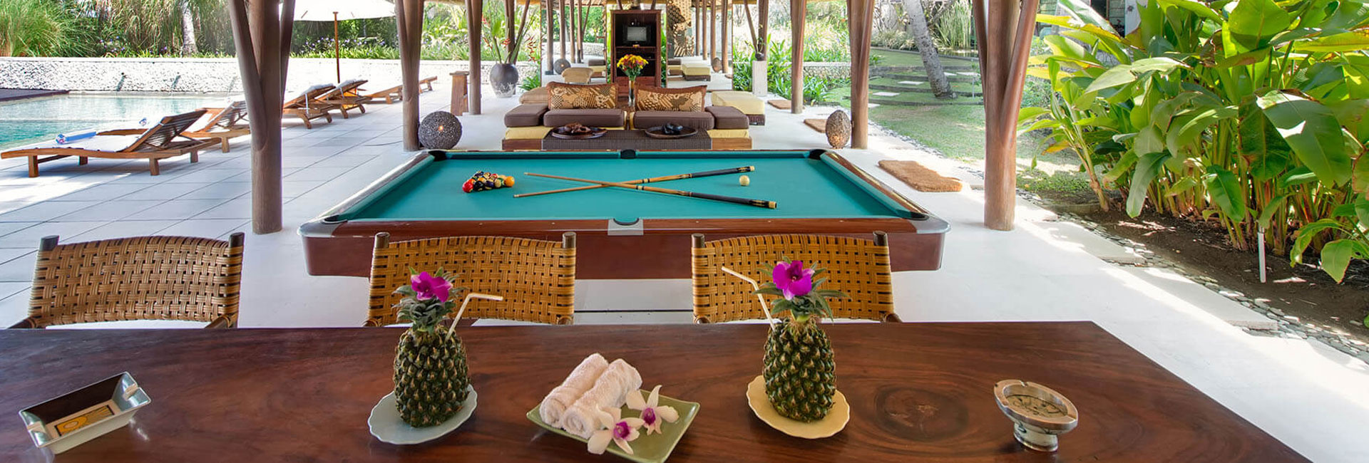 Villa Samadhana is a great villa for families, however toddlers will need to be carefully supervised around the fish ponds and water features. Kids will love the wide open spaces just perfect for a game of football. The enormous 25-metre swimming pool features a special shallow section for the little ones and a range of pool toys. If it happens to be a rainy day don’t despair, the villa is well equipped with children’s games and the entertainment pavilion provides plenty of space for kids to play.